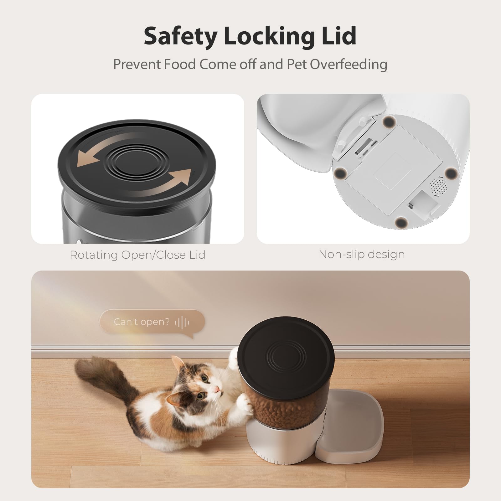Powered by a dual power supply (adapter or batteries), the feeder continues working even during power outages. The removable food tray also makes cleaning quick and easy, helping keep feeding hygienic for your pets.